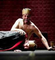 Schio VI – Amleto fool e grottesco, squadrato con l’occhio della modernità e riportato allo stato barbaro di animale ferito. Lo racconta così il Teatro del Carretto, che sceglie di prendere alla lettera il testo shakespeariano, rispettando la scansione delle parti che porta in scena, ma fa vibrare sulla scena un dramma improntato all’ironia non-naturalistica. Denso di paradossi e pensato secondo un’architettura drammaturgica peculiare, come in un gioco grottesco e malato, “Amleto” del Carretto – visto a Schio – interpreta Shakespeare come un puntello per raccontare bassezze carnali e ipocrisie sentimentali. E tutto sembra già scritto, come da un destino cieco e vile, in quel piccolo palchetto di burattini che si affaccia sul proscenio.