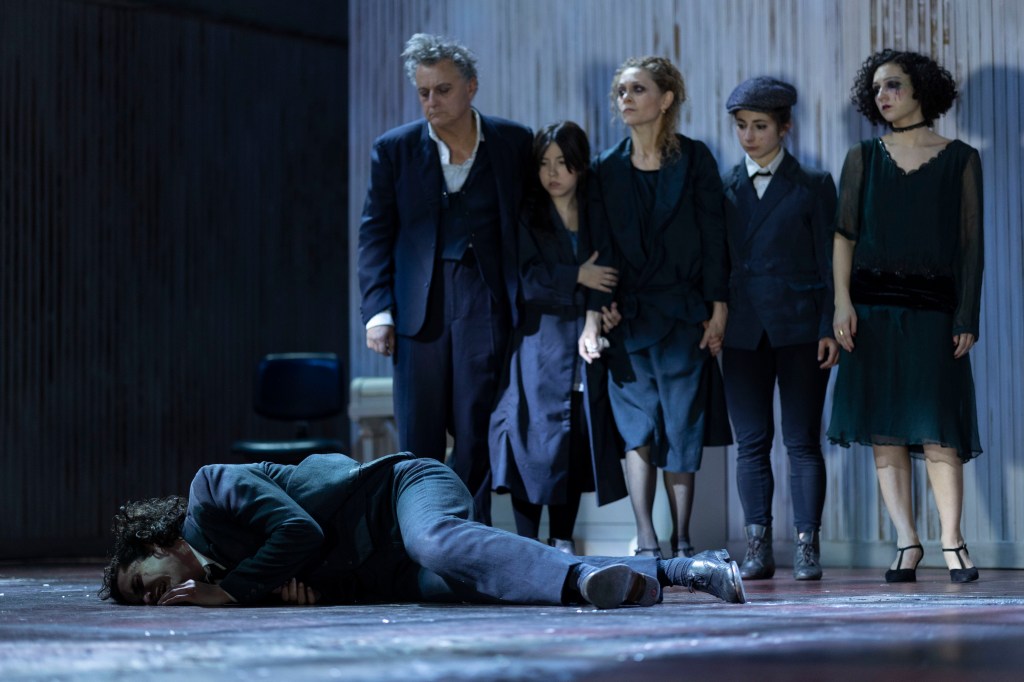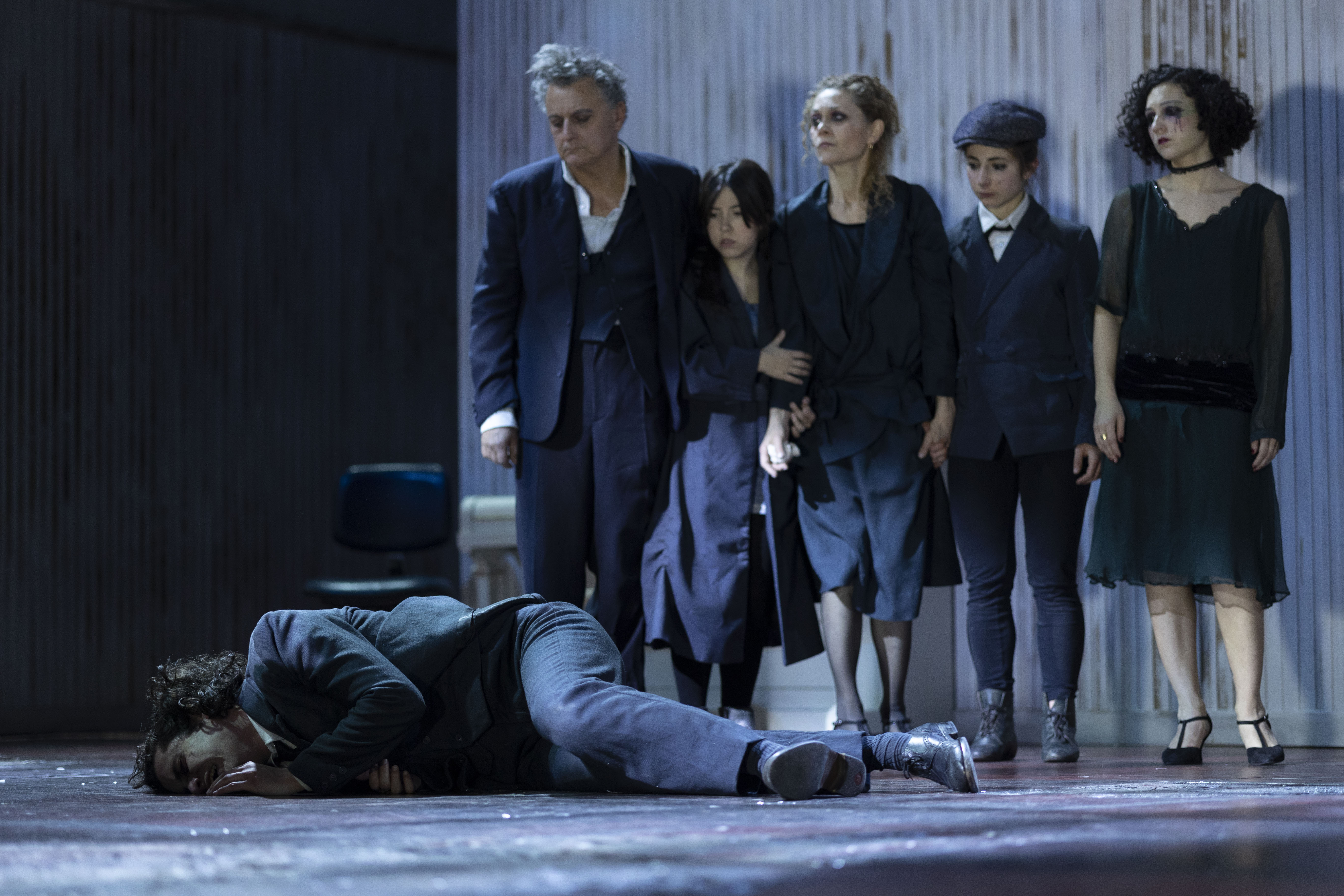 Giordana Faggiano è una Figliastra scattosa, vigorosa, filiforme, veemente. Lacera la scena con bellicosa impudenza, irrompe nei dialoghi con le sue famose, irritanti risate stridule. Nell’amato Bergson il riso è atto anti-empatico e vessatorio, e la Figliastra ne è un’incarnazione, proprio nel suo carattere iperbolico. La sua energica magrezza raggiunge l’acme nell’improvviso, rabbioso denudamento dei piccoli seni, corporea rivelazione della indicibile verità nascosta dal Padre. Sara Bertelà cerca, scruta, indaga le pieghe più riposte della propria espressione corporea e della propria voce per esprimere il dolore della Madre, trovando molteplici e sfumate variazioni sui sentimenti eterni della ritrosia, della vergogna, della timidezza, della colpa. Giovanni Drago è un Figlio dark, nell’aspetto e nello spirito. Tacito, cupo, mesto, del silenzio fa un’arma di difesa contro la Figliastra e il Padre, fino al tempestoso monologo, epifania solitaria nell’epifania collettiva di colui che «per lungo silenzio parea fioco», fino all’esplosione finale.
