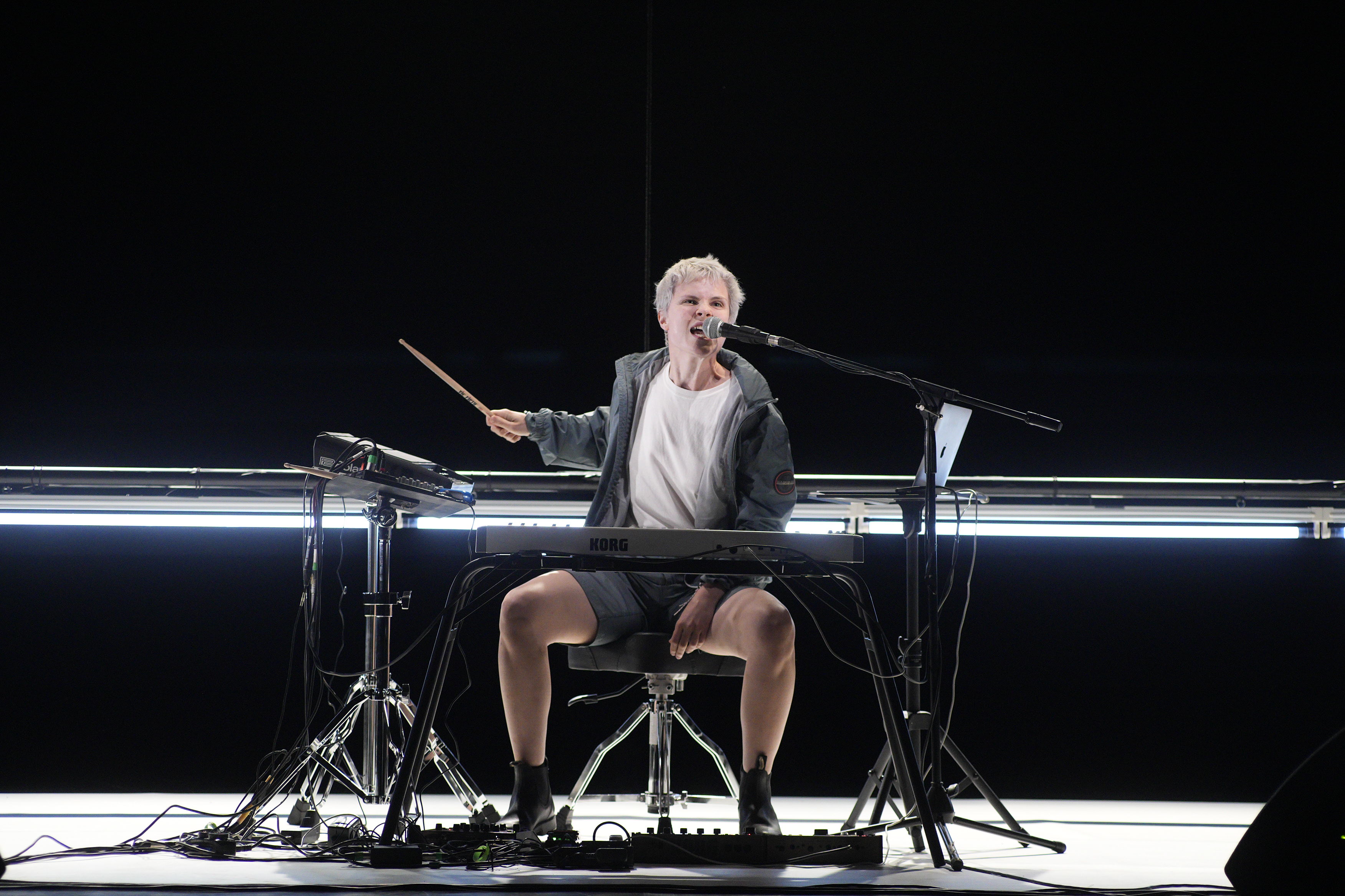 Il titolo della performance trova la sua pertinenza quando, nella seconda parte, vediamo, insieme al volto scoperto e all’intero corpo erculeo del performer, anche un testo proiettato sul fondale e un mosaico di immagini che ricordano, a mo’ di amoroso suffragio, tre danzatori polacchi del passato, emarginati per la loro queerness e ostracizzati dal potere come “pagliacci” e “pervertiti”. Grudziński accompagna testo e immagini con l’iterazione rituale di un unico, semplice movimento delle gambe, ripetuto con finalità liberatorie, fino allo stremo delle forze.
