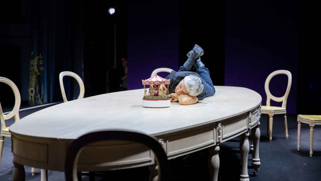 Riccardo sale e scende dal tavolo, così simile a quelli attorno ai quali siedono i potenti che decidono le sorti del pianeta, dominando il carosello di eventi che innesca. E la sua “corte” instabile di pedine-prede da sconfiggere si muove in girotondo, subendo la sua personale guerra con l’ambizione di diventare re. Govanni Franzoni è l’ambiguo cugino Buckingham complice finché non conviene, Igor Horvat è il fratello maggiore re Edoardo IV, ormai consumato, e Francesca Chiocchetti la sua regina, Elisabetta, che cerca di difendere i figli con la parola; Emiliano Masala è il fragile Clarence, altro fratello che Riccardo fa uccidere; Riccard Bocci e Tommaso Cardarelli sono Hastings e Rivers, destinati ad essere spazzati via. E poi Carlotta Vescovo, la regina Margherita destituita, memoria di tutto il sangue versato; Giovanna Di Rauso, la Duchessa di York, è la madre dei tre fratelli, Riccardo, re Edoardo e Clarence, donna severa che assiste ferita allo sfacelo attorno a sé; Ludovica D’Auria è la giovane Lady Anna che viene circuita da Riccardo al funerale del marito; Cristiano Moioli e Lorenzo Vio, impegnati in più ruoli, rappresentano il braccio armato del potere, quello che “normalizza” le decisioni più atroci.