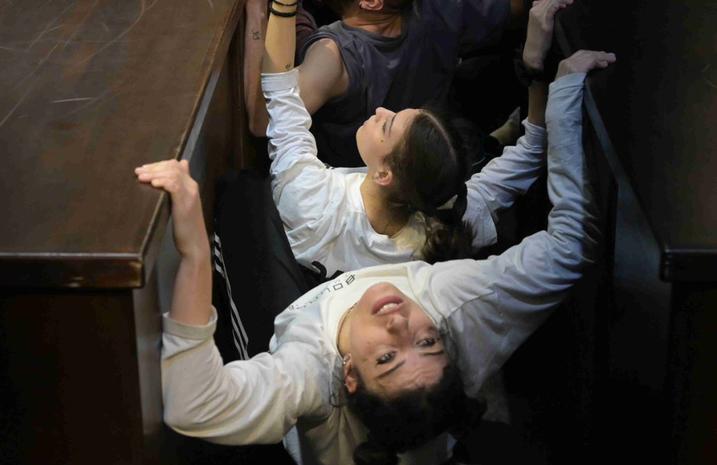 La sua riflessione sul potere prende forma, in sala prove, da immagini, improvvisazioni e strutture già definite, come conferma il coreografo, “poi il margine dell’elaborazione resta completamente nelle mani dei danzatori. Io creo fisicamente tutti i movimenti, dopo di che loro lo processano. E a volte il risultato che ne esce fuori è molto più bello di quanto avessi immaginato. Ho cercato di trasferire a ognuno di loro un personaggio particolare che avesse qualcosa a livello interiore: all’esterno, apparentemente, sembra un gruppo organizzato, obbediente e fedele, ma al tempo stesso, al suo interno, si notano le differenze. C’è quello che è più ambizioso, il più devoto, chi sa cosa assorbire, chi è terrorizzato dalla possibilità di perdere il lavoro. Si può trovare tutta l’umanità in un contesto simile, dove c’è tutto tranne che il reale interesse per ciò che quel partito o quella situazione stanno cercando di stabilire”.