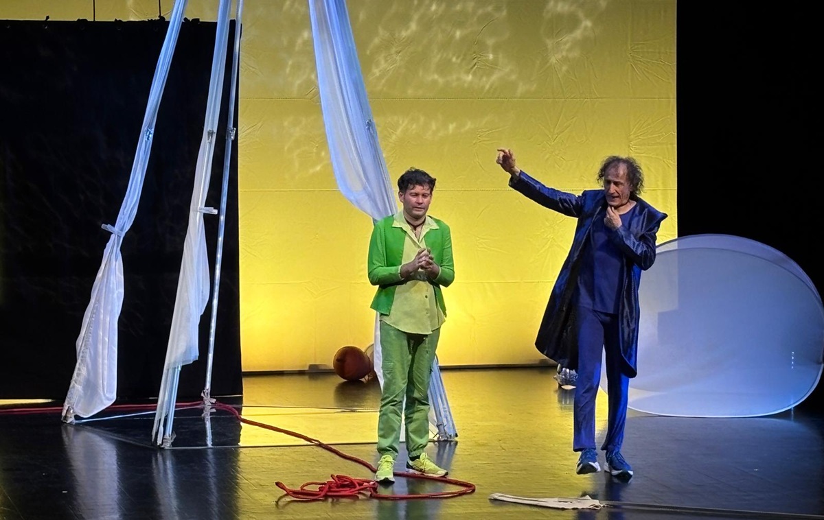 Con “Metadietro” – visto al Teatro Astra di Vicenza – il duo di artisti premiato con il Leone d’Oro alla carriera alla Biennale di Venezia torna a navigare nel mare agitato dell’assurdo, in uno spettacolo che diventa viaggio e naufragio al tempo stesso. Il titolo è già una dichiarazione di intenti: “Metadietro” indica un movimento impossibile, la volontà di andare oltre tornando indietro, la ricerca di un “oltre” che si rovescia in retroguardia. “Cosa vedi?”, chiede l’ammiraglio Antonio Rezza al capitano e compagno di avventura Daniele Cavaioli: “Te da dietro” replica lui. “E come mi vedi?” “Grande”. “Perché stai usando… il cannocchiale. Te da dietro, me da dietro…”.