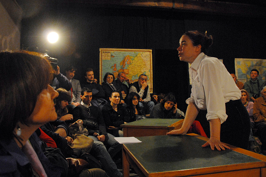 OLINDO RAMPIN | L’odore del secolo scorso ci viene subito incontro con questa scrivania di ardesia, le carte geografiche appese, i vecchi banchi di scuola. Laura Cleri, autrice e interprete dello spettacolo prodotto dal Teatro Due di Parma, vi aggiunge alla fine anche l’odore del caffè. Lo prepara lei stessa, con due vecchie caffettiere, passo … Leggi tutto Un’idea di donna. La vita piena della partigiana Laura